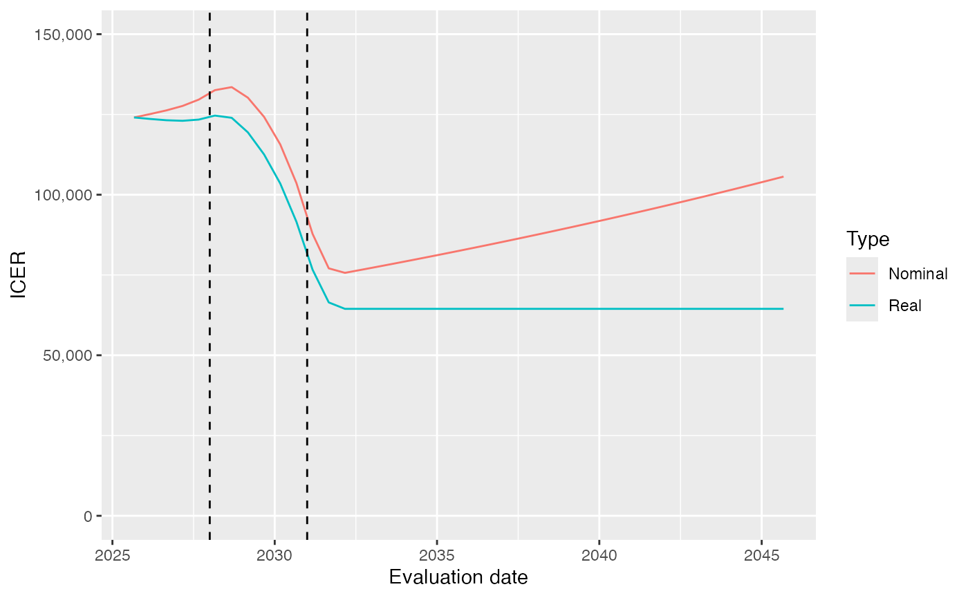 # Nominal ICER, and real (inflation adjusted) ICER